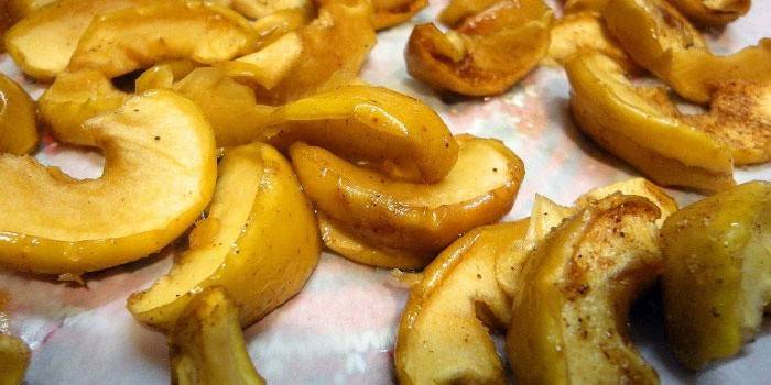 - Фрукти викладаються на спеціальну форму для випічки і відправляються в духовку на півгодини (температура повинна бути не вище 180 градусів).
