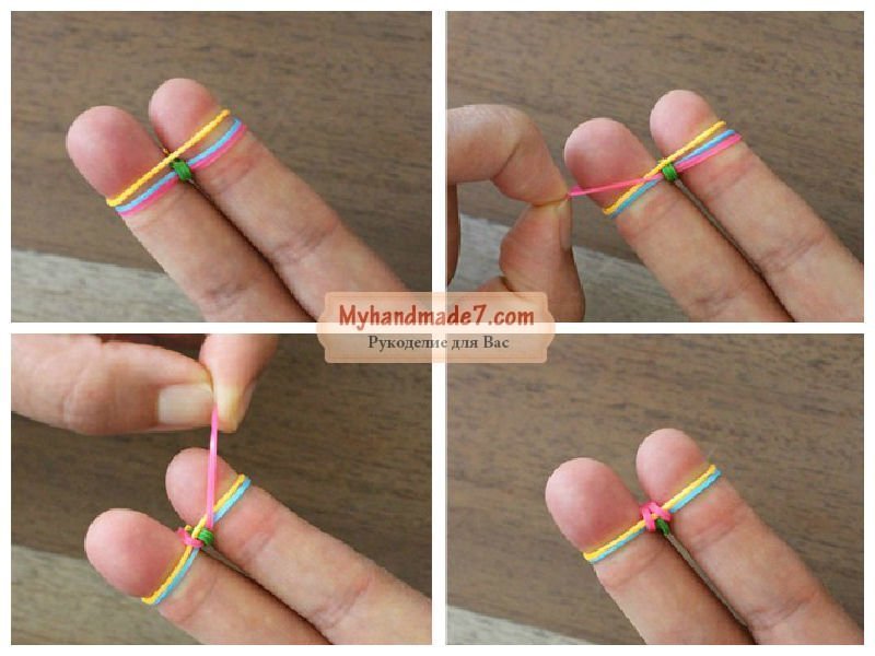 - Отже, зробіть одну резиночку вісімкою і надіньте її на пальці