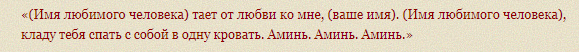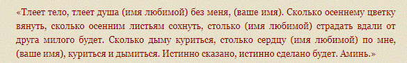 Сходіть на кладовищі в суботу, яка не припадає на церковне свято. Візьміть з собою трохи цукерок і відшукайте могилу з ім’ям, як у коханої. Візьміть з неї землю і насипте на ту, де написано ім’я як у вас. Покладіть біля могилки цукерки і промовте: