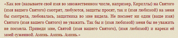 В даному випадку обряд здійснюється на імені виконавця. Важливо відзначити, що якщо виконавець не хрещений, то краще довірити дію іншого. Для обряду потрібно охрещена людина. Краще ворожити в день власного церковного імені, тобто в іменини. І ще важливо відкласти обряд, якщо на цей день припадає серйозний церковне свято.