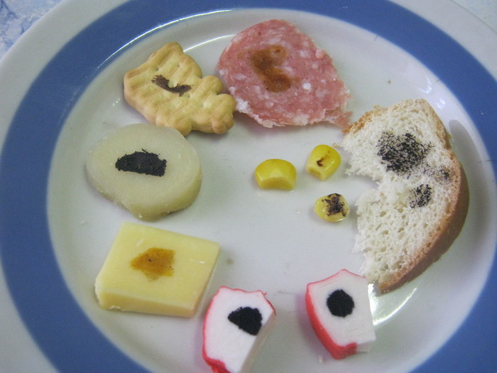 • Цікаво, що варена ковбаса покаже відсутність крохмалю або його малу частку, а ось сосиски забарвлять в світло-синій колір. Копчена ковбаса також включає до складу якийсь відсоток крохмалю.