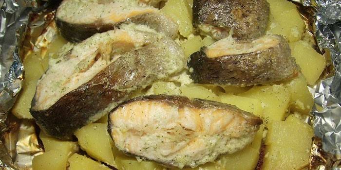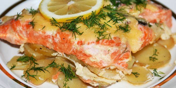 Червона риба з картоплею в духовці