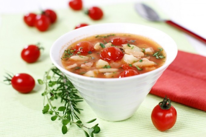 - Томатний рибний суп може внести різноманітність у ваше щоденне меню. З-за того, що в його складі є ароматні стиглі томати він виходить більш свіжим і пікантним. При бажанні ви можете додати в цей супчик перець чилі і кілька зубчиків часнику і тоді це блюдо зможе претендувати навіть на чоловічу їжу