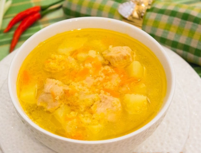 Суп з пшоном завжди виходить досить яскравим. А якщо ще додати в нього яку ні будь жирну рибку, наприклад, сьомгу, то страва вийде ще й дуже наваристим. Але при готуванні такої страви треба обов’язково враховувати, що пшоно вариться досить довго. Тому буде краще, якщо ви покладете в рибний бульйон заздалегідь відварену крупу.