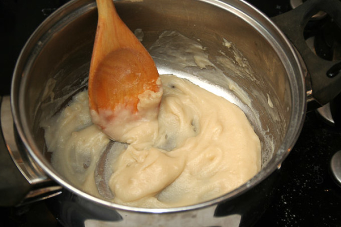 - В борошно з вершковим маслом вводимо вершки і все ретельно перемішуємо