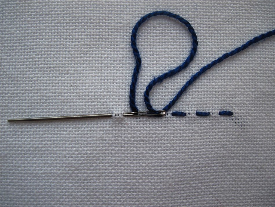 Голку вводять на одній відстані рівномірно, виходить красивий шов, який щільно зшиває тканини, також такими стежками можна оформляти красиві вишивки.
