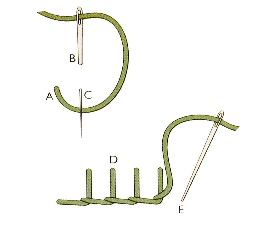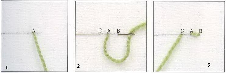 Шви петельні — виконують, як на малюнку нижче. Довжину стібка роблять не більше 0,5 міліметрів.