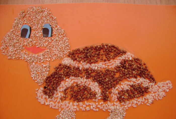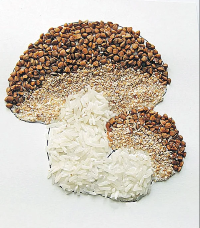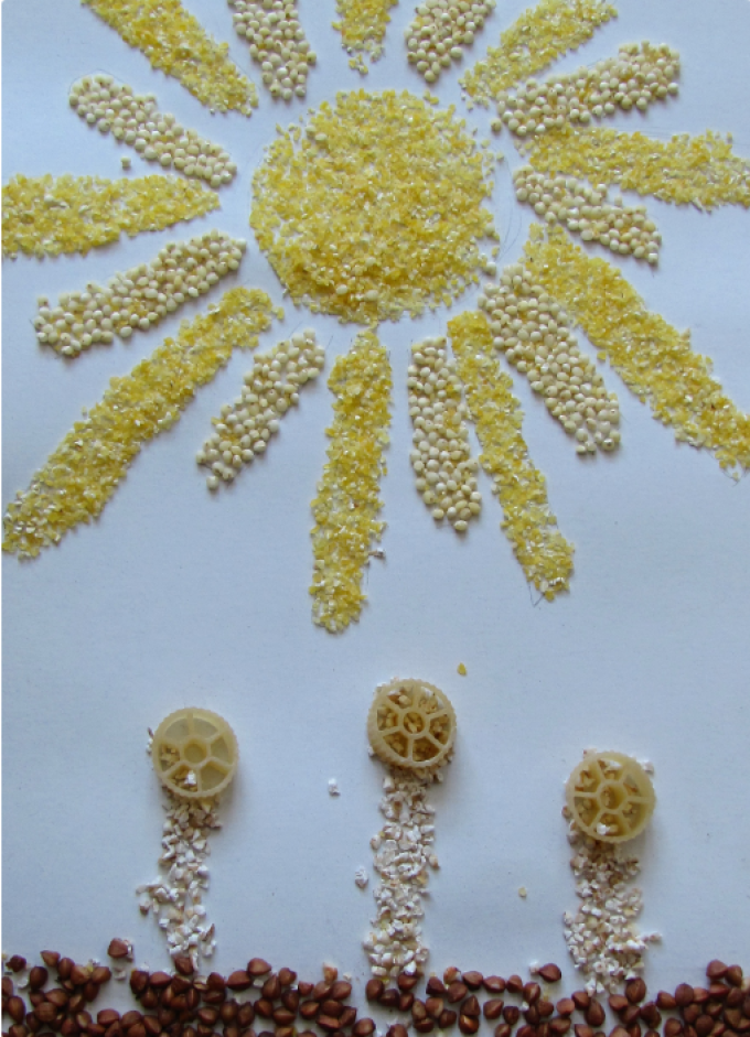 Щоб сформувати аплікацію, візьміть рисову, гречану і ячну крупу.