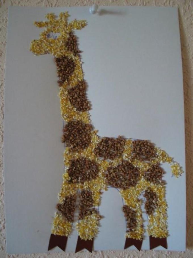 Якщо манну крупу краще всього використовувати для зимових виробів, то інша дозволяє створювати інші композиції у вигляді рослин, тварин і так далі. Пропонуємо вам ознайомитися з декількома цікавими ідеями створення цікавих аплікацій, які точно сподобаються вашим дітям.