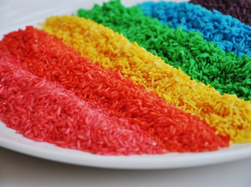 Існує кілька способів фарбування крупи і кожен з них можна використовувати для створення виробів.