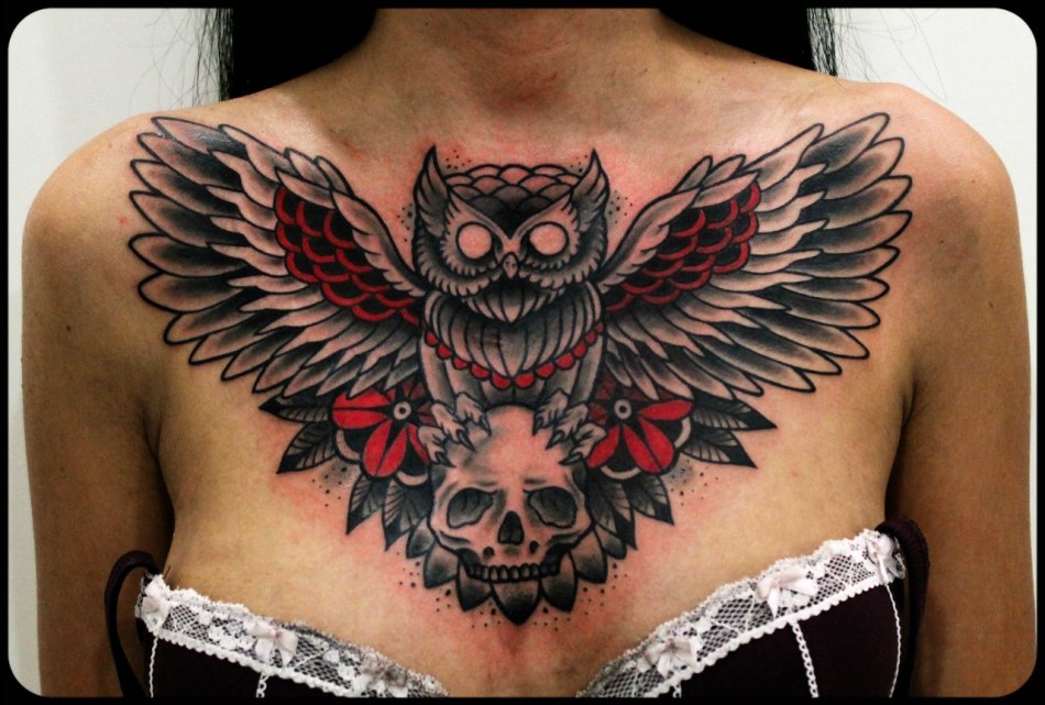 Найчастіше саме представники слабкої статі хочуть бачити зображення сови, філіна у себе на грудях або плечі. Загальне трактування тату сови на жіночому тіліце відображення мудрості і набутого життєвого досвіду, що говорить про особливе сприйняття дійсності.