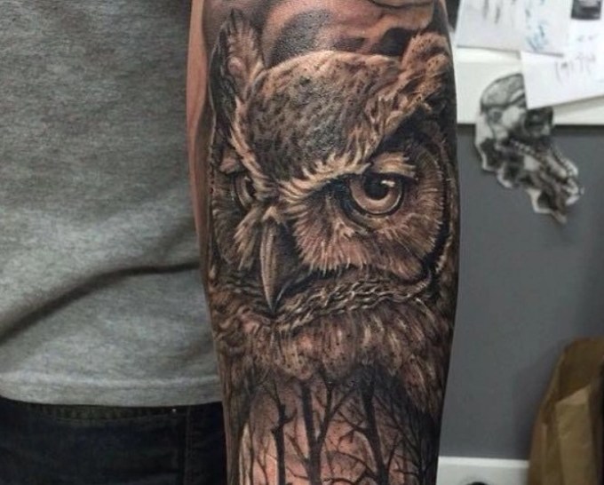 Тату на руці – це досить сміливий крок, оскільки вона буде помітною для оточуючих, тому перш ніж приступити до процесу варто добре подумати в якому стилі буде малюнок із зображенням нічного птаха. Для татуювань на руках найчастіше використовують такі стилі як: