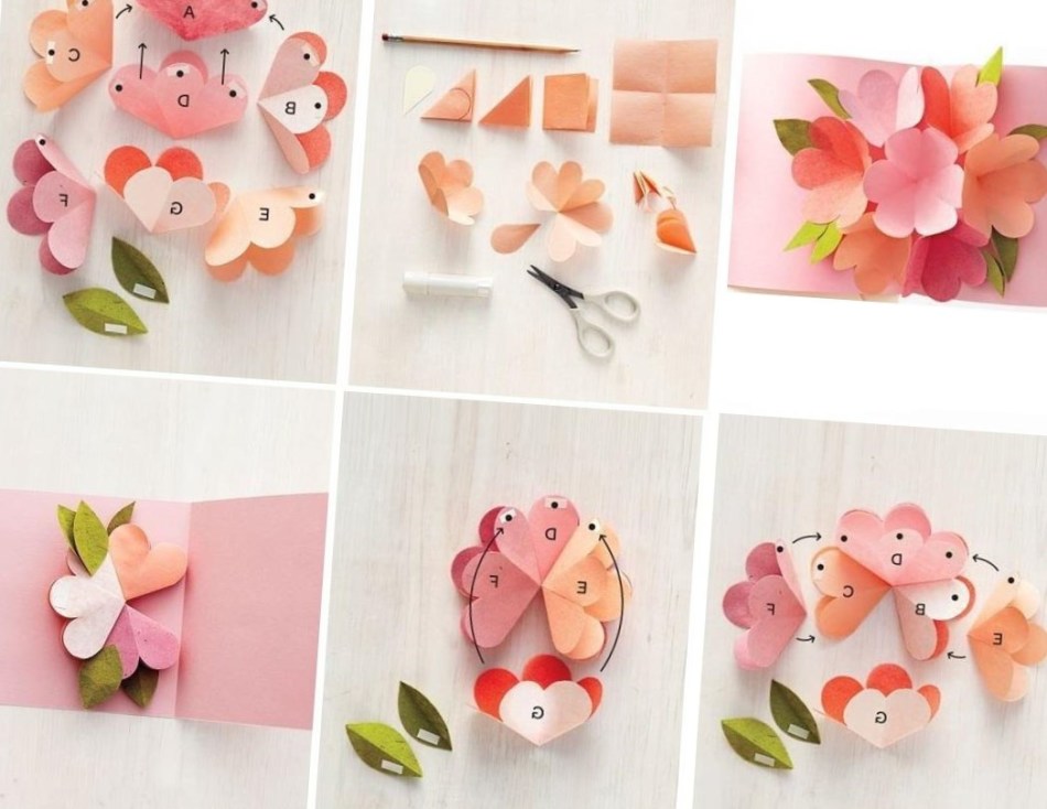 - Для створення листівки підійде будь декоративної матеріал – можна наклеїти квіти, зроблені з гофрованого або оксамитовою папери, зробити аплікацію з намистин, гудзиків, шматочків тканини, фетру