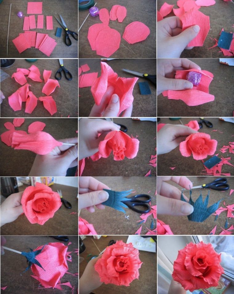 Самими красивими квітами для букетів є троянди. Вони теж виходять красивою з крепованого паперу. Для створення дотримуйтесь інструкції: