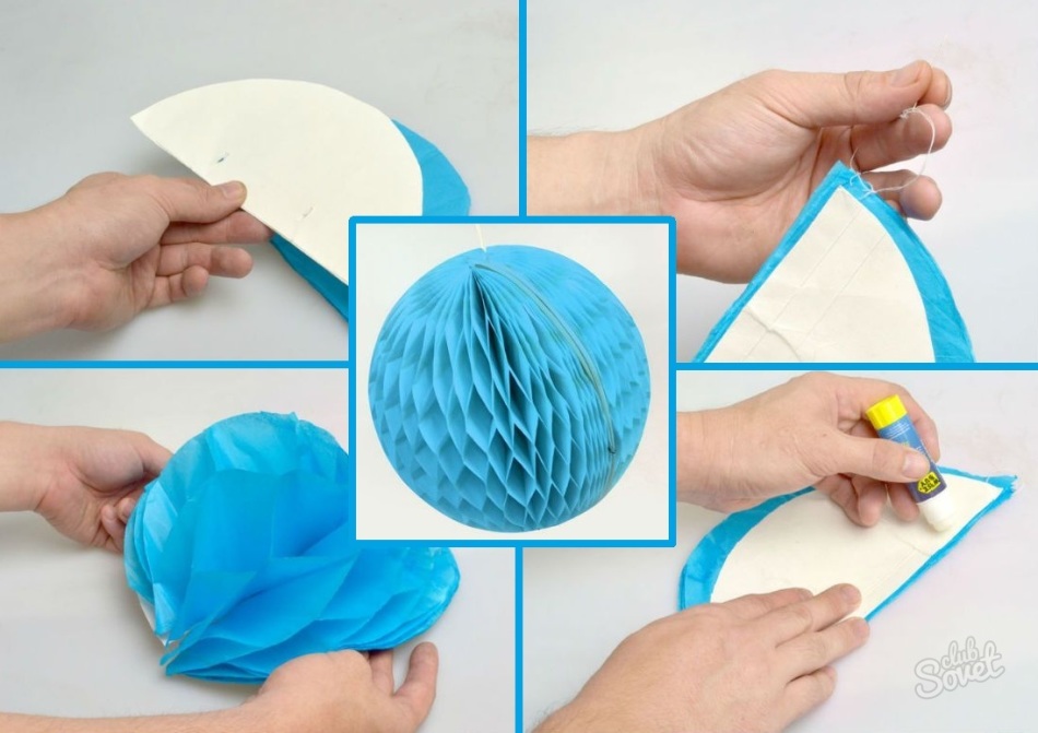 Як ми вже говорили, прикраси їх крепованого паперу виходять великими і дуже красивими. Для виготовлення вам знадобиться креп, лист картону, клей, двосторонній скотч, а також нитки і ножиці.