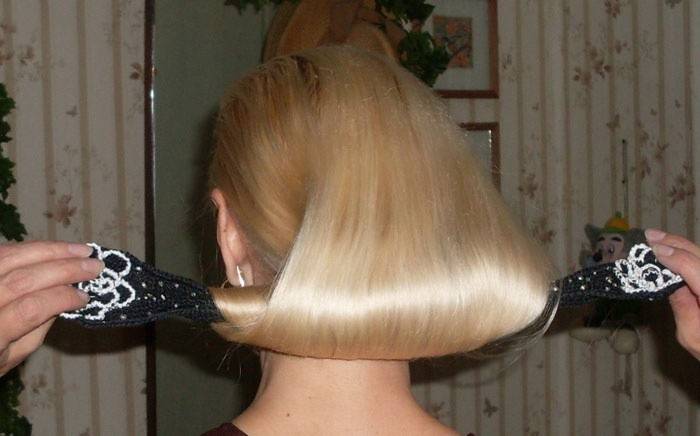- Під підставу хвоста підкладіть овальний валик. Закріпіть його за допомогою гребеня або невидимок.