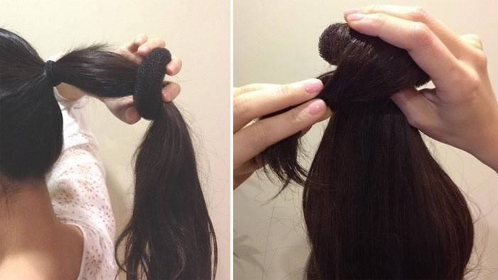 - Замість гумки надіньте бублик для волосся, пропустивши кінчики волосся в кільце.