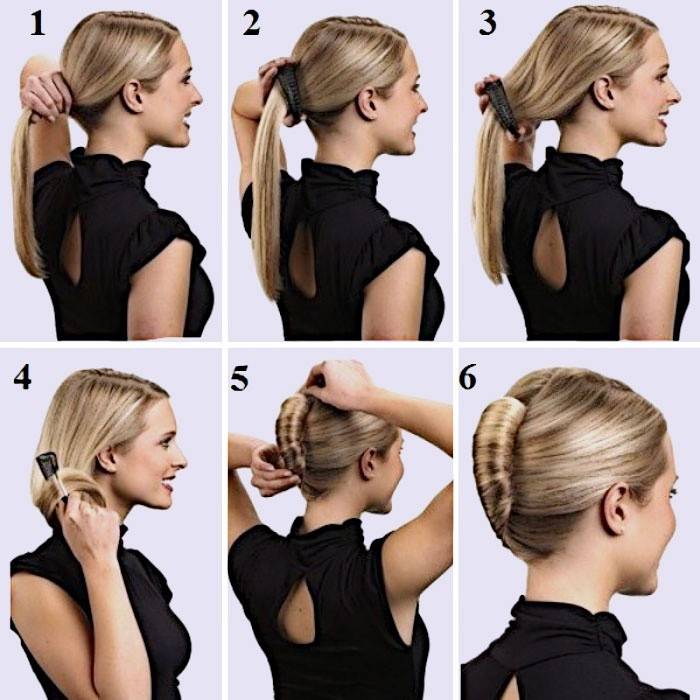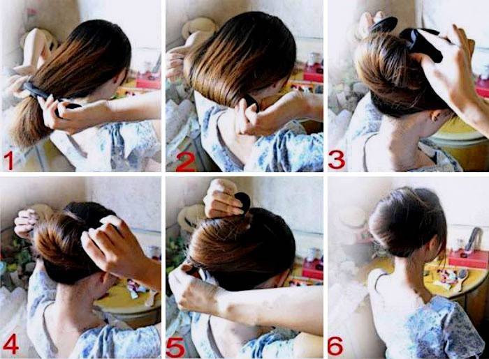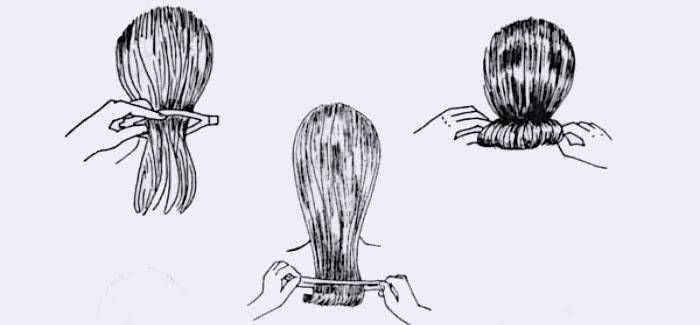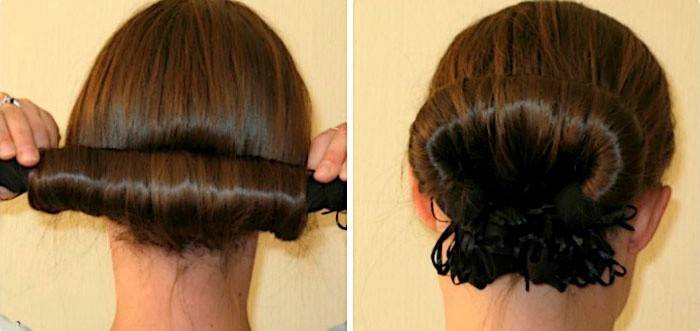 - Щоб створити елегантний пучок, добре розчешіть волосся. Зберіть хвіст в тому місці, де хочете бачити майбутню зачіску. Обережно просуньте хвіст в отвір твістера, розподіліть по всій області. Якщо виконується класичний варіант, простежте, щоб зайвих прядок не вибивалося.