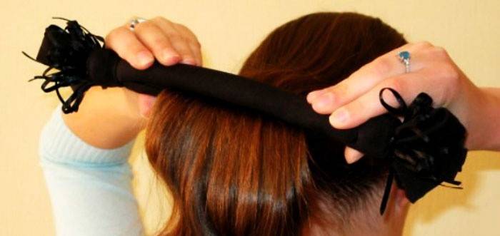 - Почніть поступово скручувати волосся від кінчиків до потиличної частини, злегка натягуючи шпильку, щоб пасма розподілялися рівномірно і прилягали до твістеру щільно.