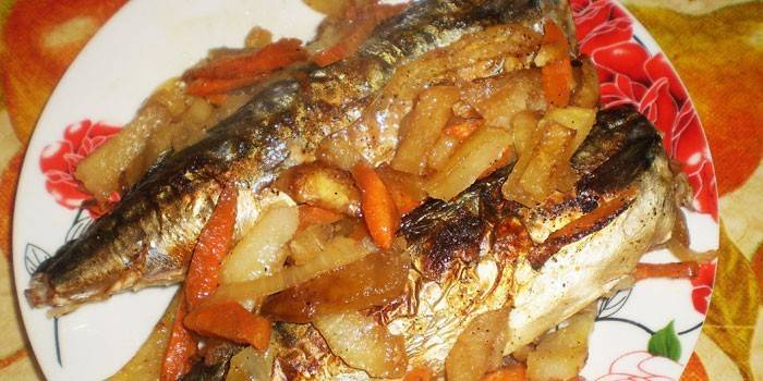 Риба є білковим продуктом, тому нутриціології радять поєднувати її з рослинною їжею: це корисно, смачно, легко, просто. Запекти її з овочевою сумішшю – справа на півгодини, з яких робота господині займає всього 7-10 хвилин. Набір овочів можна вибирати довільно, оскільки ця риба добре поєднується і з традиційними морквою-картоплею, і з менш популярними спаржею-цукіні.