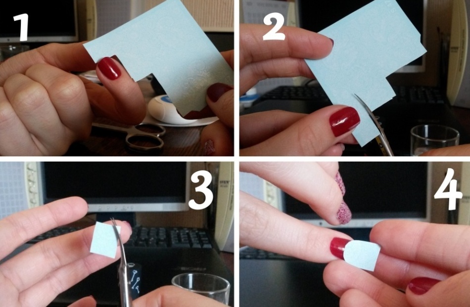 - Обрані наклейки підганяються під нігтьову пластину за формою і розміром