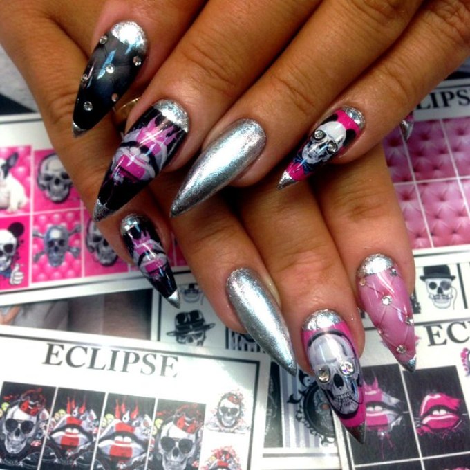 - За необхідності, дизайн нігтів з наклейками доповнюється іншими декоративними елементами
