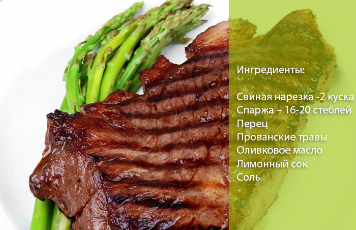 - Поруч зі спаржею кладемо шматки смаженого м’яса