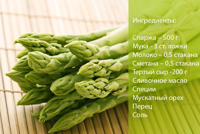 Для цієї мети краще всього вибрати зелену різновид цього овоча. Нижче представлений дуже популярний рецепт спаржі під сирним соусом.