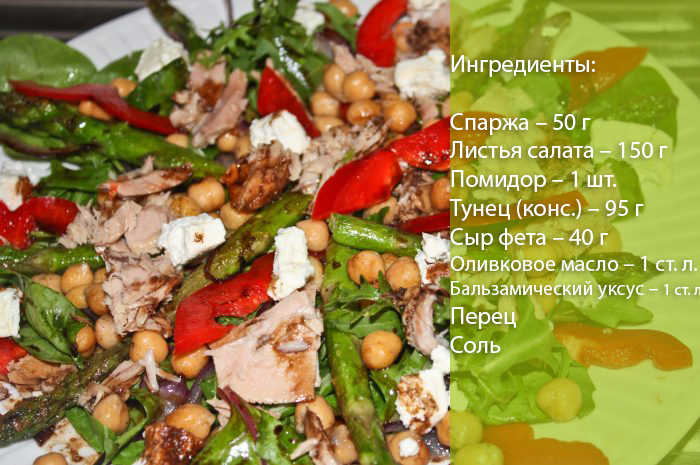 - Салат з тунця і спаржі з фетою