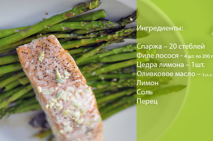 - Лосось, запечений зі спаржею в духовці