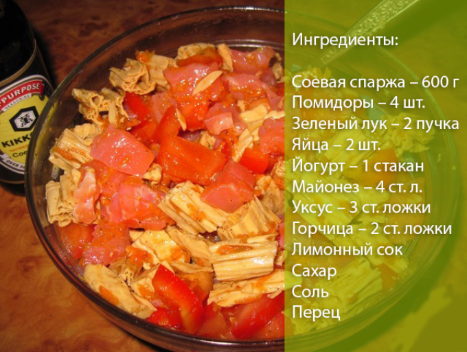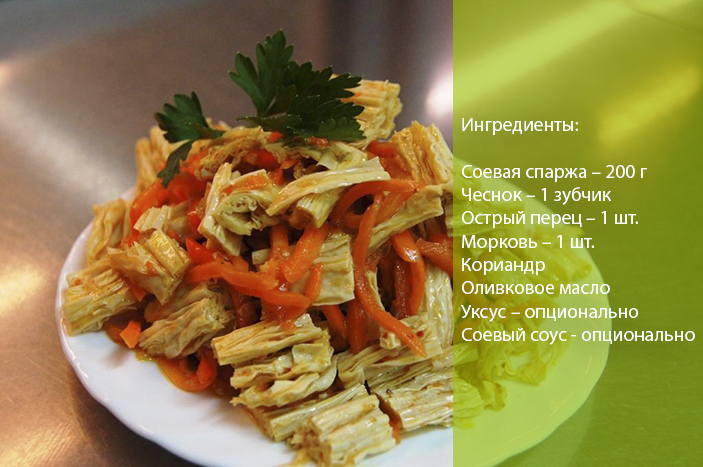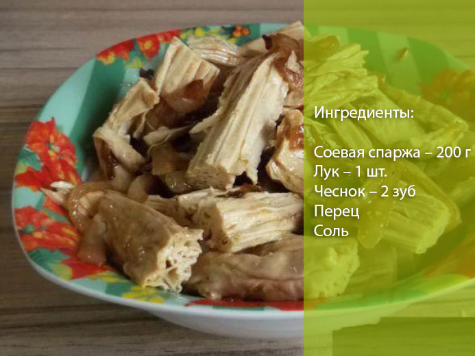 Спаржа соєва. Ще один різновид спаржі, яка не має ніякого відношення до рослини. Її виготовляють з пінки соєвого молока, яка утворюється при нагріванні цього продукту. Спаржа соєва дуже популярна в азіатській кухні.