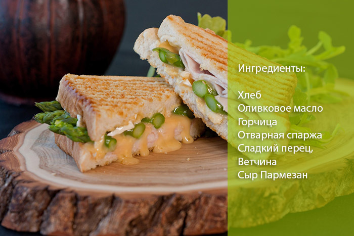 - Паніні з шинкою спаржею і солодким перцем