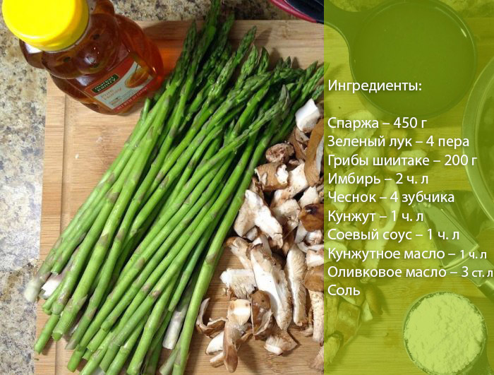 - Спаржа з грибами