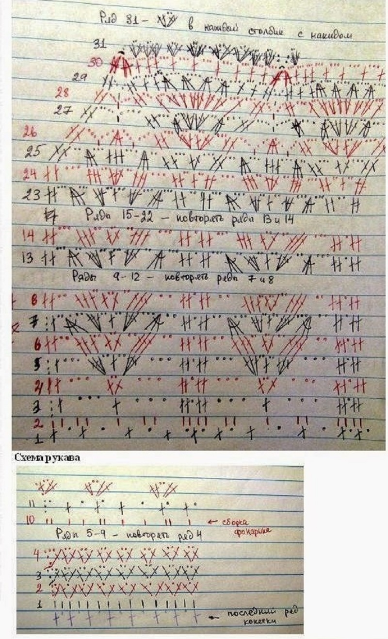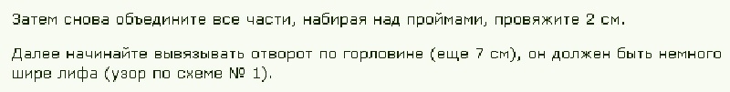 4. Після цього 7 раппортов залиште для передньої частини сукні, 6 для рукавів і спинки.