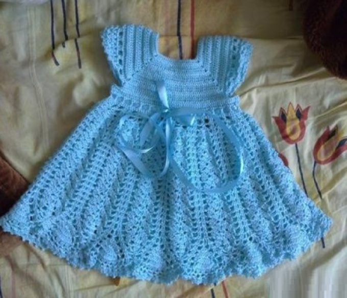 Це був один з численних варіантів. Зараз розповімо вам, як плаття сніжинки для малятка пов’язати повністю гачком, включаючи і поділ.