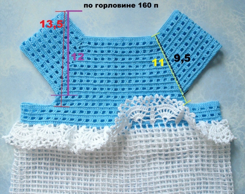 8. Горловина сукні обв’язується стовпчиками без накиду.