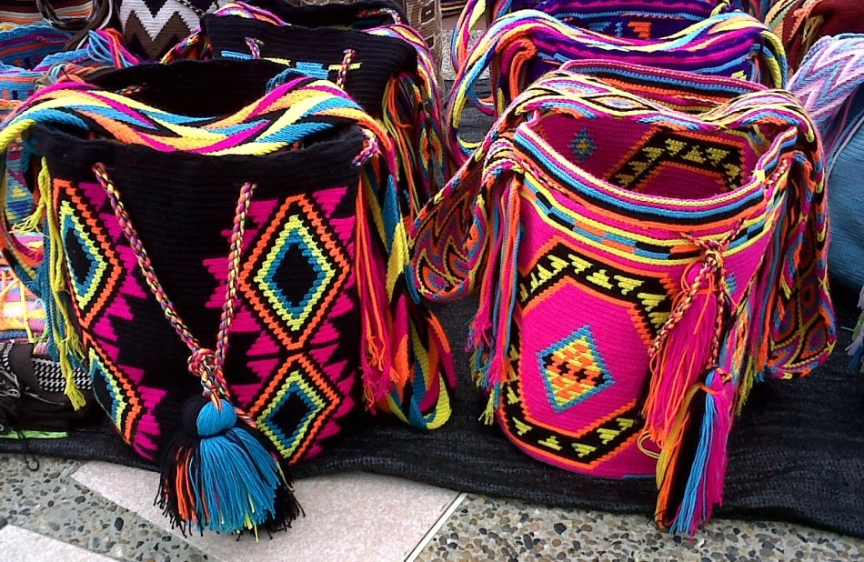 Сумка-мішок в стилі Бохо — яскраво і оригінально. Зв’язати такий візерунок легко за допомогою спиць і звичайної пряжі контрастних кольорів.