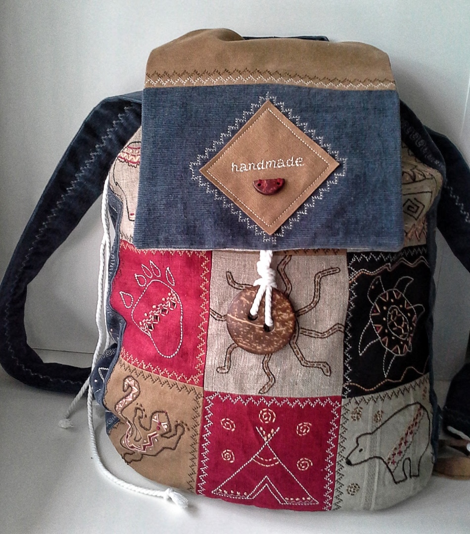 Як зшити рюкзак в стилі Бохо своїми руками? Для створення такого виробу можна використовувати стару портьерную тканина, старі джинси, клапті іншого одягу, яку ви вже не носите.