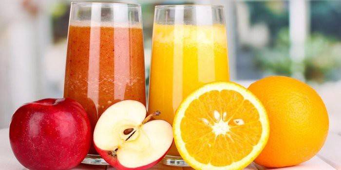 Фруктові або овочеві соки Плоди (яблука, банани) Кефір або йогурт з низькою часткою жиру Фруктовий або овочевий салат |