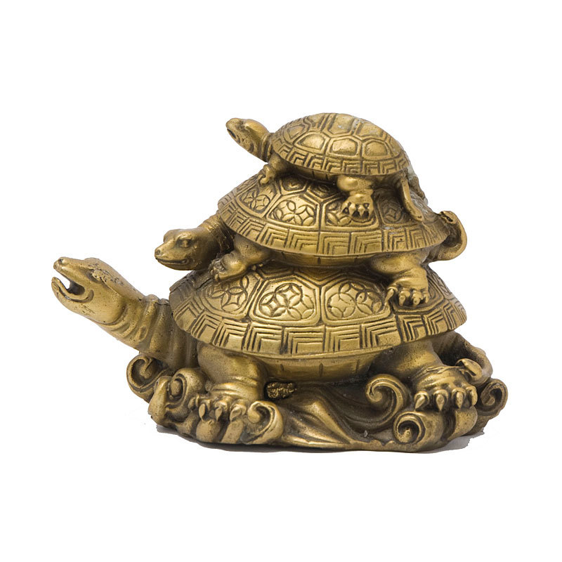 5. Одна черепаха або три черепахи – символізує заступництво небесних сил і довголіття. Одна черепаха є талісманом водної стихії і розміщується в північній зоні житла. Також можна помістити черепаху в чашу з водою. Точне встановлення розташування талісмана можна дізнатися, якщо стати спиною до дверей і визначити північну зону за спиною – це і буде сприятливе місце для талісмана. Встановлювати символ необхідно в однині, так як північного сектору відповідає число — 1. Не рекомендується тримати талісман у спальні – не парний символ черепахи може зруйнувати баланс гармонії у стосунках сім’ї. Талісман з трьох черепах необхідний для будинку, в якому проживають члени сім’ї кількох поколінь – він здатний внести в їхні стосунки більше взаєморозуміння і любові, здоров’я і благополуччя. <>
