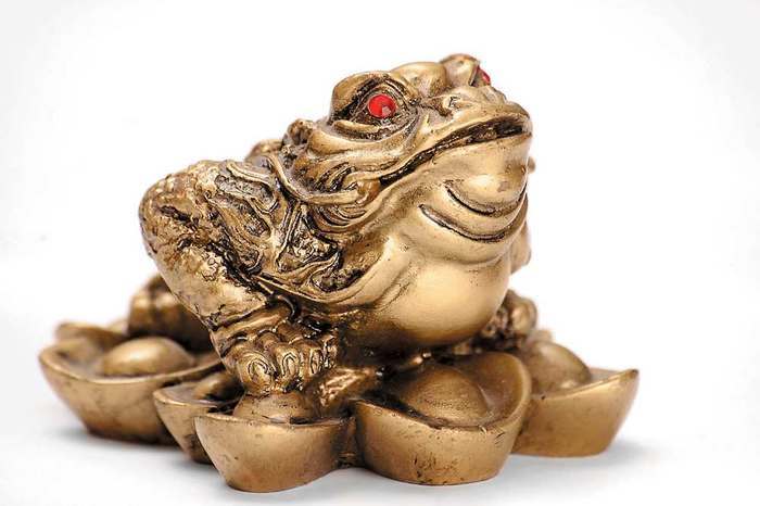 7. Жаба на трьох лапах – один з найпоширеніших талісманів. Символізує добробут і достаток у домі. Для того щоб реалізувати функцію талісмана — необхідно помістити жабу у водну стихію: при вході в приміщення встановити чашу з водою або фонтан. Добре помістити таку конструкцію в секторі багатства. Вибирати символ слід той, у якого є монетка в роті. Важливо стежити за тим, щоб монетка мала правильний напрямок і не прилипала.