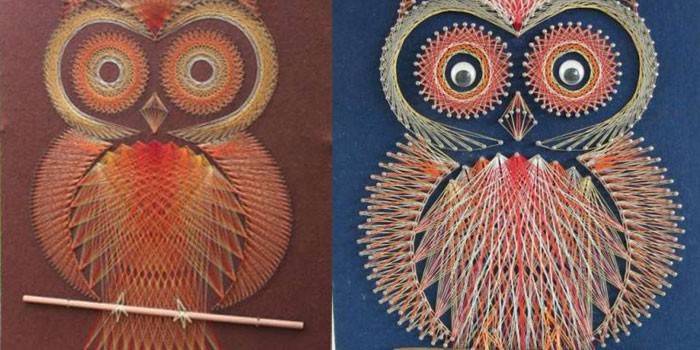 Птахи – символ польоту, легкості і свободи. Однак не кожен вид пернатих настільки зрозумілий і простий символічний сенс. Наприклад, сова вважається символом цнотливості, проникливості і здатності передбачати майбутнє. Зображують цю птицю в усіх видах рукоділля, в техніці стрінг арт сова теж не стала винятком: