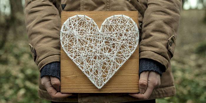 Почати ознайомлення з новим видом мистецтва варто з найпростіших зображень, наприклад, зробити серце з ниток і цвяхів своїми руками. Така саморобка буде під силу навіть дітям, якщо дорослі допоможуть вбити гвоздики. Крім того, такий стринг-арт може стати відмінним подарунком або ж просто прикрасити стіну у вашій спальні. Покроковий майстер-клас полегшить поставлене перед вами завдання: