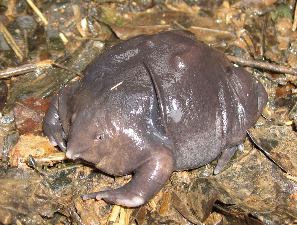 6. Пурпурова жаба — даний вид був виявлений в 2003 році. Жаба виглядає немов шматок желе. У неї некрасива голова з гострим носом.