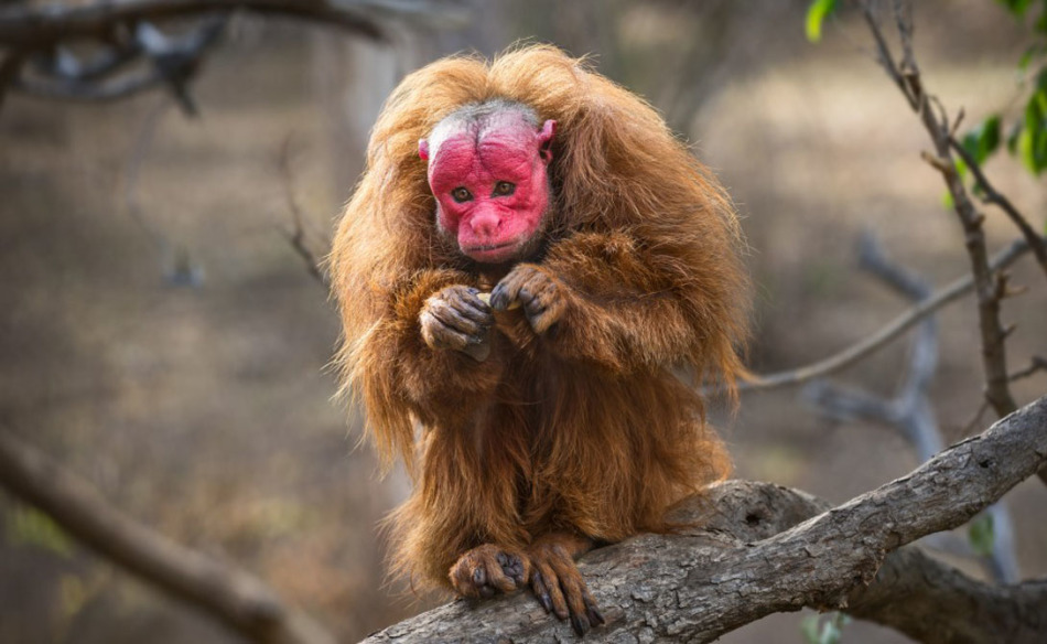 10. Уакари — різновид мавпи, тіло якої вкрите волоссям, а мордочка — лиса, яскраво-червоного або рожевого кольору.