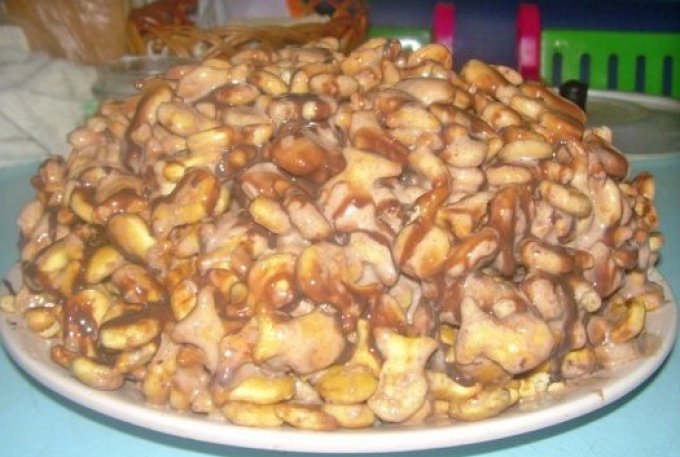 - РЕЦЕПТ: торт з печива рибки без випічки зі згущеним молоком та сметаною