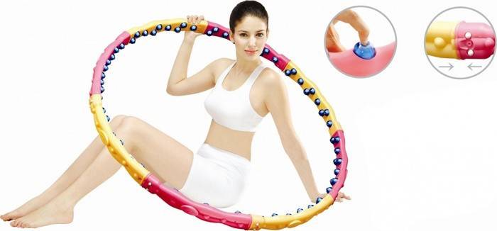 - Хула-хуп. Щоб позбутися від жиру на боках і животі, не знайти кращого варіанта. Обруч зручно крутити будинку, навіть при перегляді улюбленого фільму, а складаний хула-хуп ви можете взяти з собою в поїздку. У продажу є моделі з кульками, магнітами, перші діють за тією ж схемою, що і пояс-тренажер для преса живота. Хула-хуп масажує проблемну область, сприяє знищенню жиру, допомагає боротися з целюлітом. Тренуватися з обручем слід регулярно, щоб підтримувати форму.