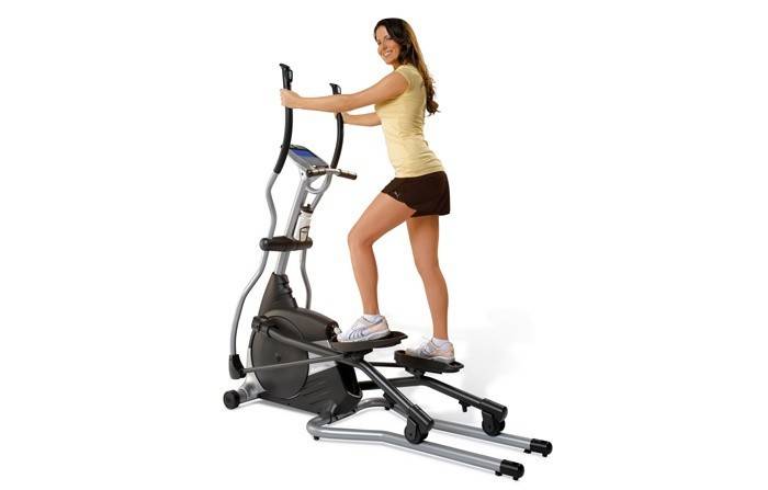 - Еліптичний тренажер. Прекрасна модель для комплексної тренування. Імітує спортивну або лижну ходьбу, з допомогою якої задіються всі м’язи. Не тільки схуднення забезпечують заняття на еліпсоїді, але і допомогу в лікуванні суглобів. За одне тренування вдається позбутися від 750 ккал. Жир з боків при регулярних заняттях піде дуже швидко.