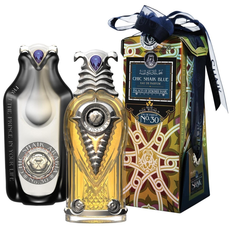 Chic Shaik №30. Цей аромат – надзвичайно приваблива суміш загадкових східних ночей, немов витканих з казок і елегантного Заходу, з його сміливістю і неповторним стилем. Це аромат для дівчини або жінки, яка любить бути різною кожен день. Власниця аромату сьогодні – сильна і вражає своїм розумом бізнес-леді, а завтра – легка і м’яка східна красуня, грайливо приподнимающая з лиця вуаль.