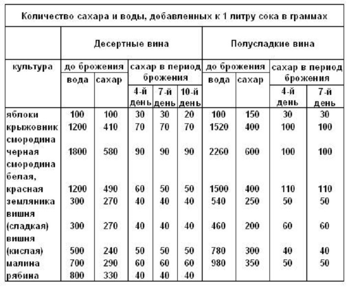 На відміну від вина з винограду, де методом зниження маси цукру досягався результат отримання сухого вина, у розглянутому випадку цукор слід використовувати відповідно до рекомендацій рецепта.
